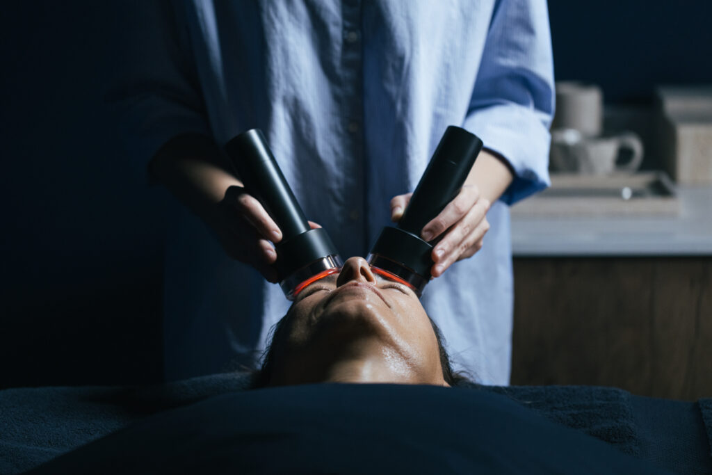 Equipamento integrado com luz LED vermelha (630nm) para otimizar a absorção de ativos e potencializar os processos naturais de regeneração e reparação tecidual.